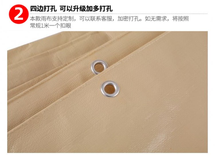 肉色PE防水篷布四邊打孔,默認(rèn)常規(guī)1米一個扣眼,可以升級加多加密打孔,雨布支持尺寸規(guī)格定制。
